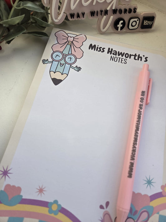 Cute Teacher relative personalised a5, a6 gummed tear off notepad gift
